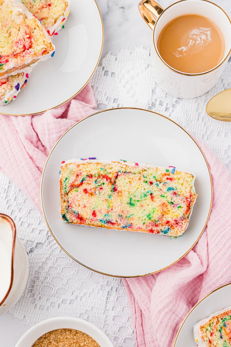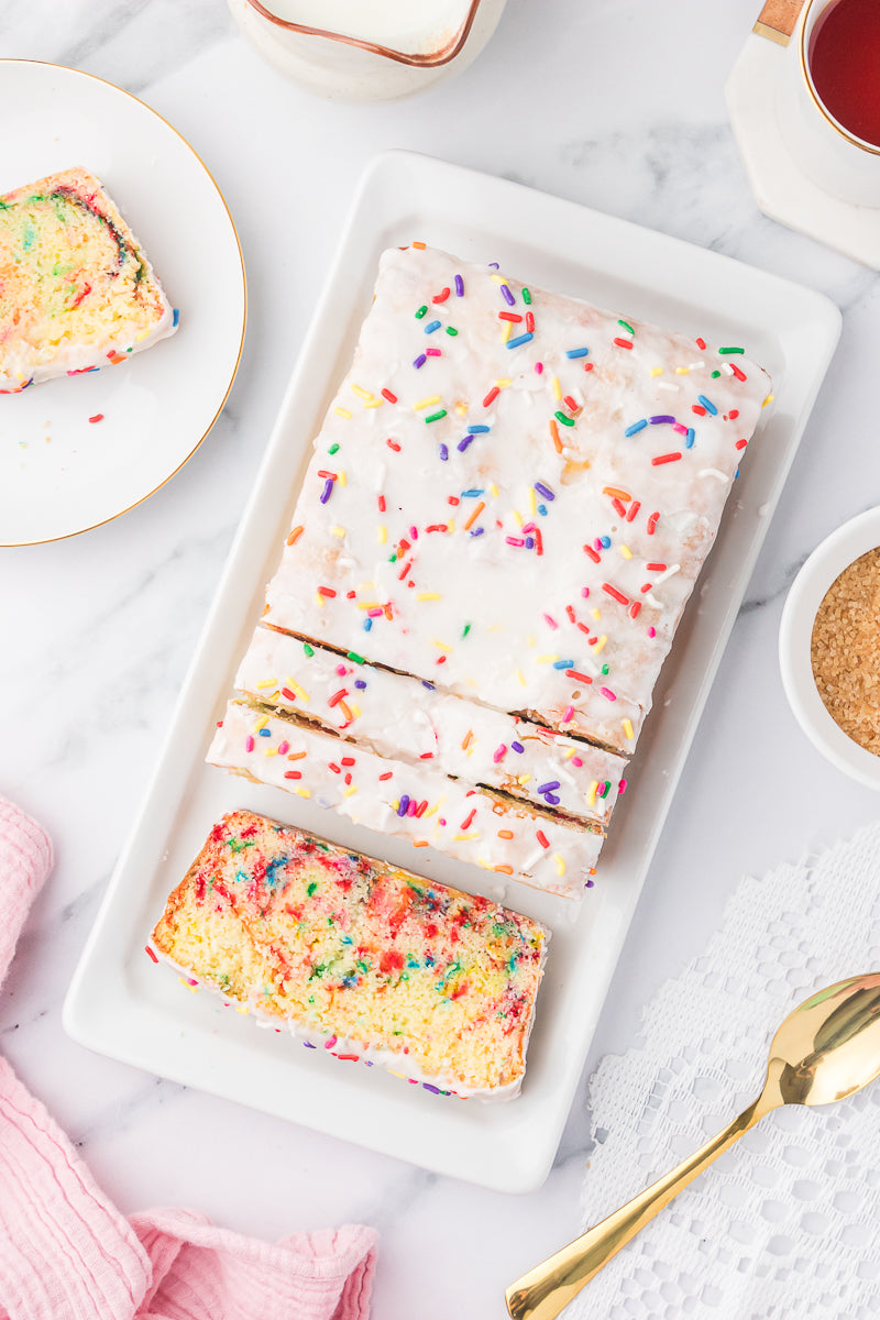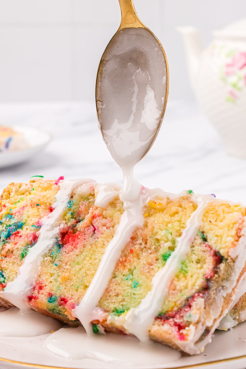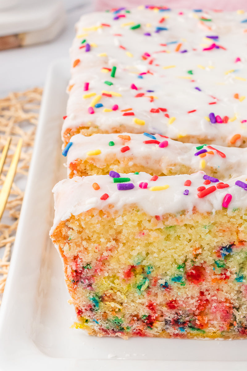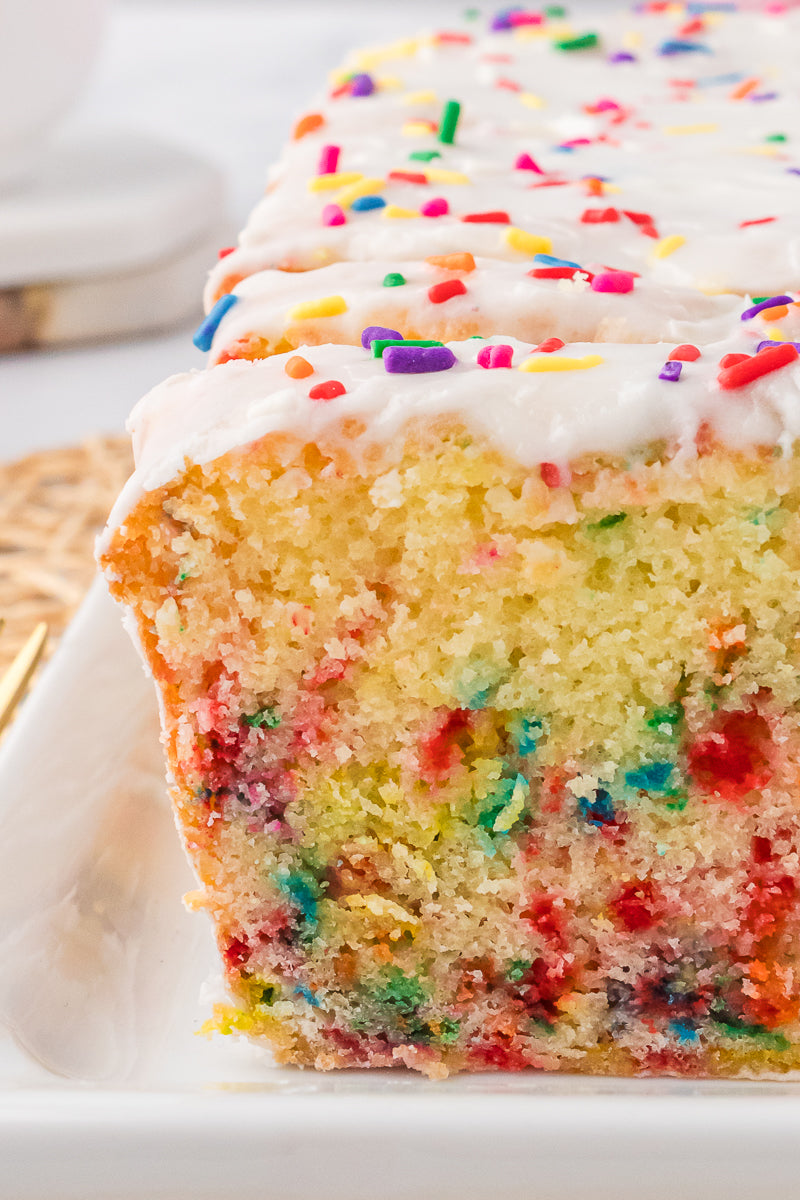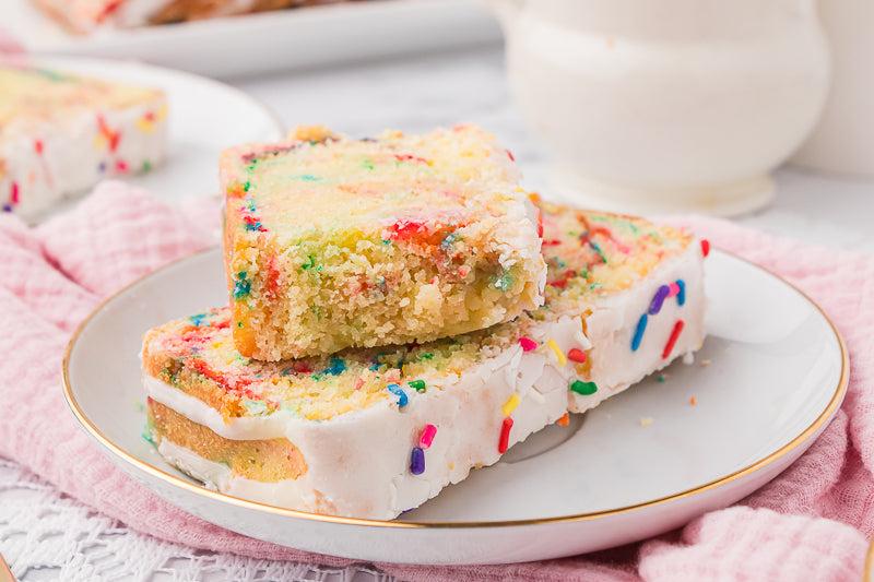 This easy, one-bowl recipe uses reverse creaming to create a reliable pound cake with the perfect crumb that is moist yet won’t fall apart! The cake is baked using the cold oven method to create a slightly caramelized crust that has great flavor and texture. The sprinkles and lemony sour cream glaze make it extra special! This is a quick, low-stress birthday cake that anyone can make!